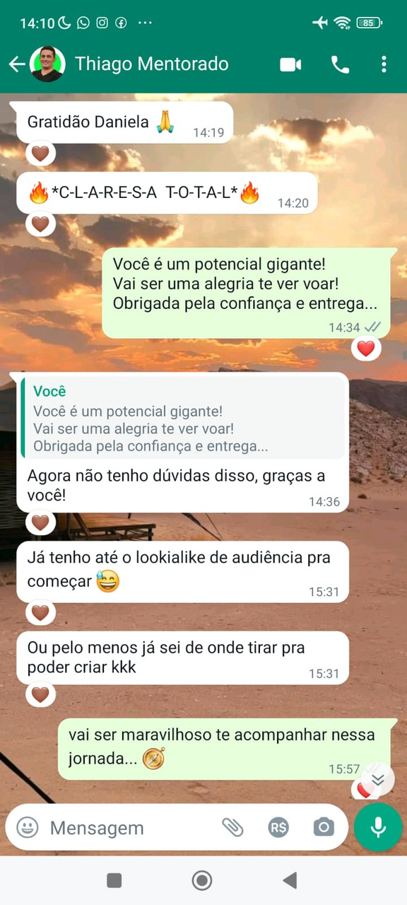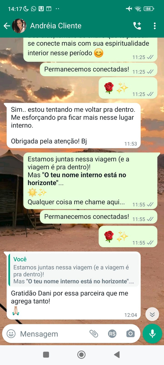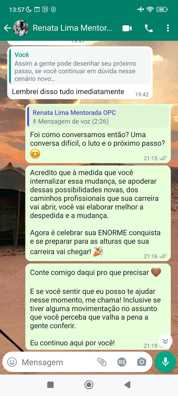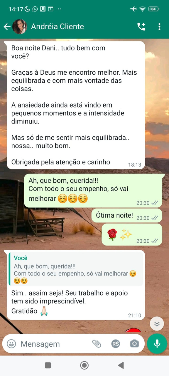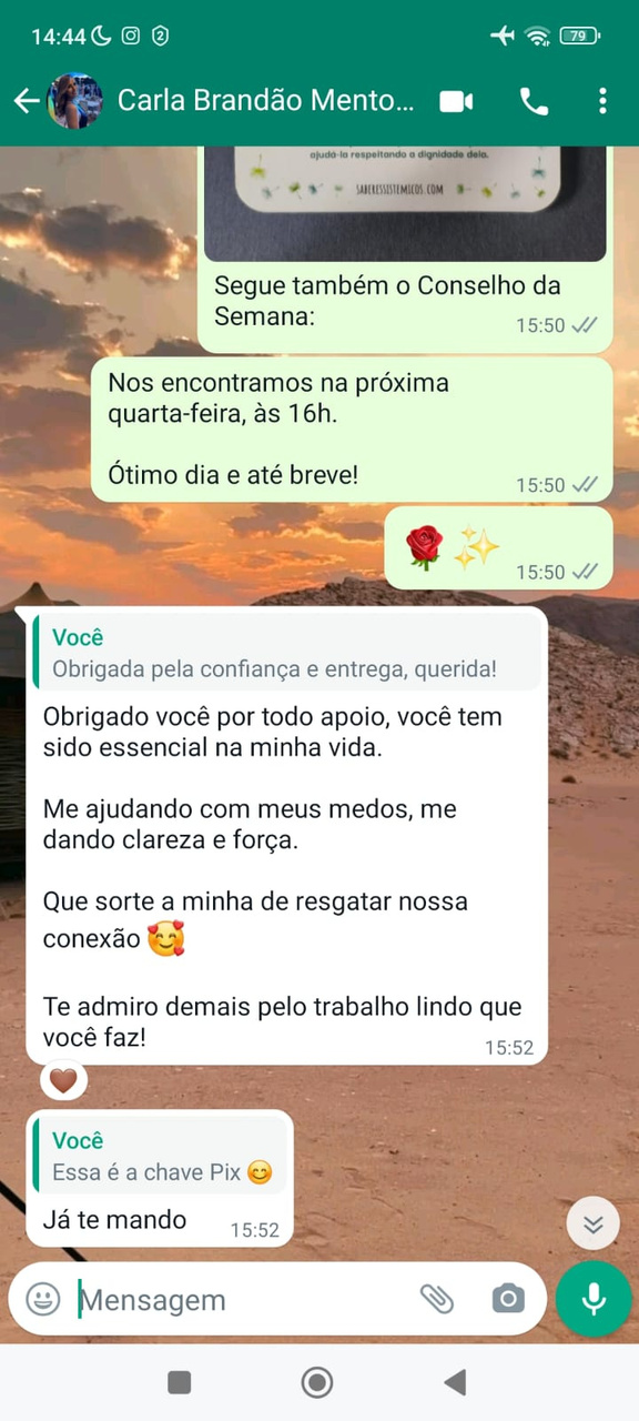 Durante o período de 07 dias após o atendimento, você terá suporte individual e personalizado no Whatsapp, para monitoramento do seu processo de forma próxima e com o máximo de aproveitamento.