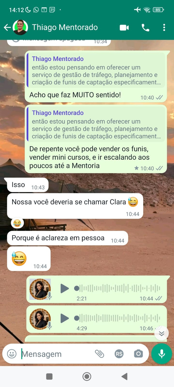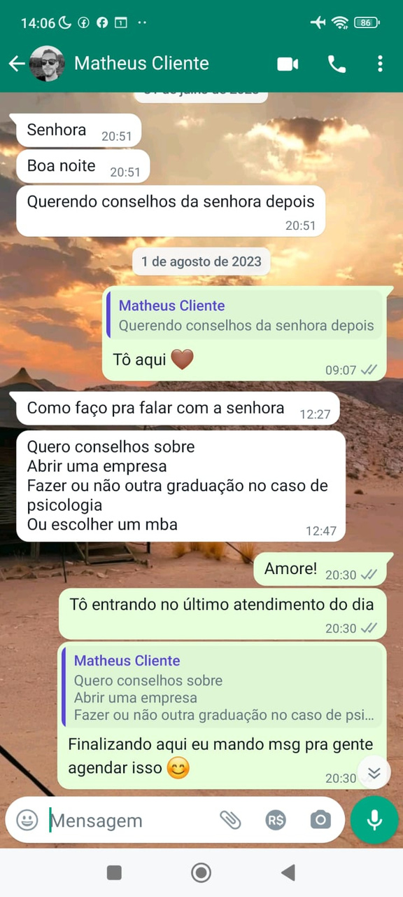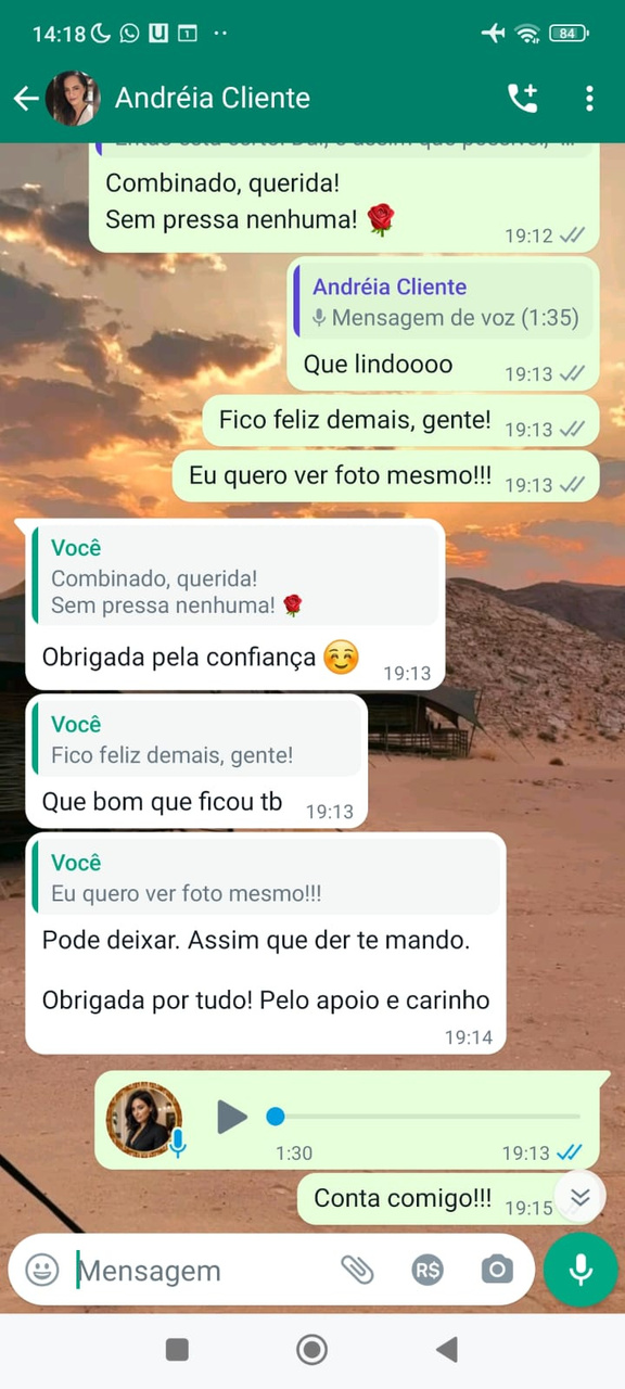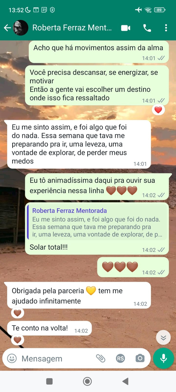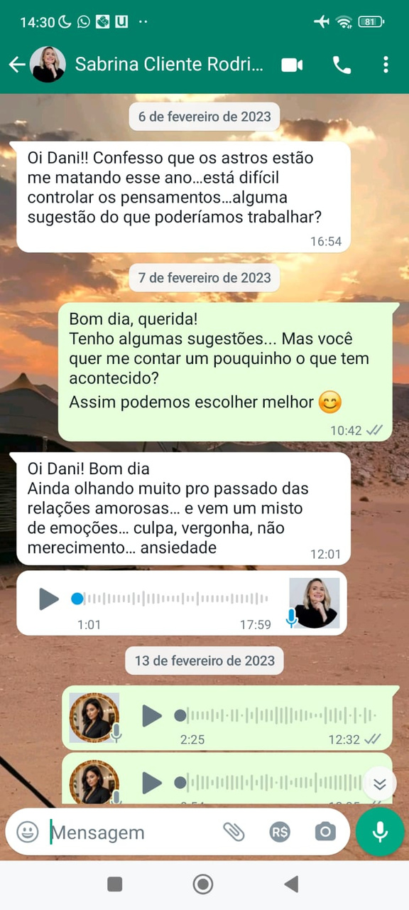 Durante o período de 07 dias após o atendimento, você terá suporte individual e personalizado no Whatsapp, para monitoramento do seu processo de forma próxima e com o máximo de aproveitamento.