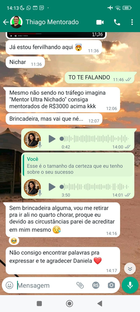 A Consultoria é entregue no Zoom, e você vai receber todas as instruções no seu grupo de Whatsapp. Se tiver alguma dificuldade, escreva para suporte@danielamesquita.com.br e eu ficarei feliz em te orientar!